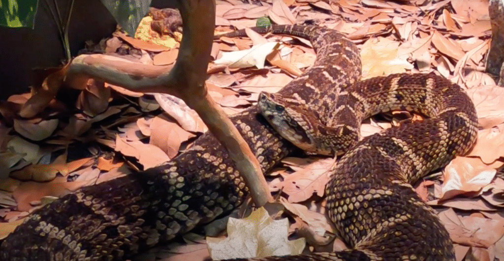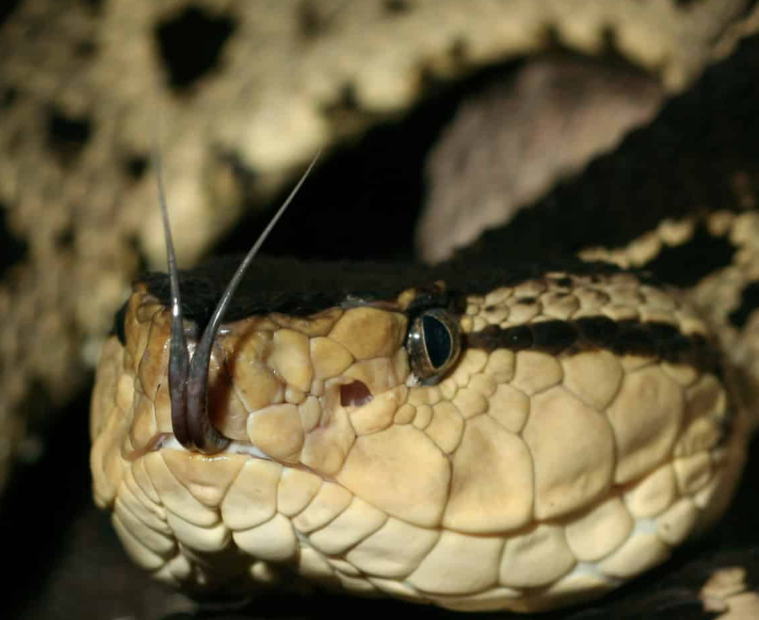The fer-de-lance’s venom is considered highly toxic and can cause severe symptoms, including pain, swelling, bruising, blistering, nausea, numbness, vomiting, tissue necrosis, internal bleeding, and organ damage.
