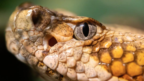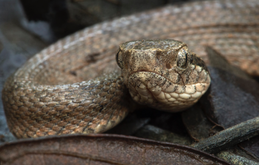 The bothrops asper is from Central America and its scales look like leaves and branches. The bothrops insularis’s color is different from the other fer-de-lance species with a white color is stands out from the forest making it easy to spot.