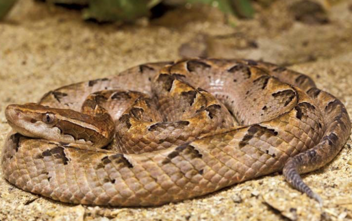 The Bothrops Atrox is native to South America and has similar colors to the Bothrops Caribbaeus.