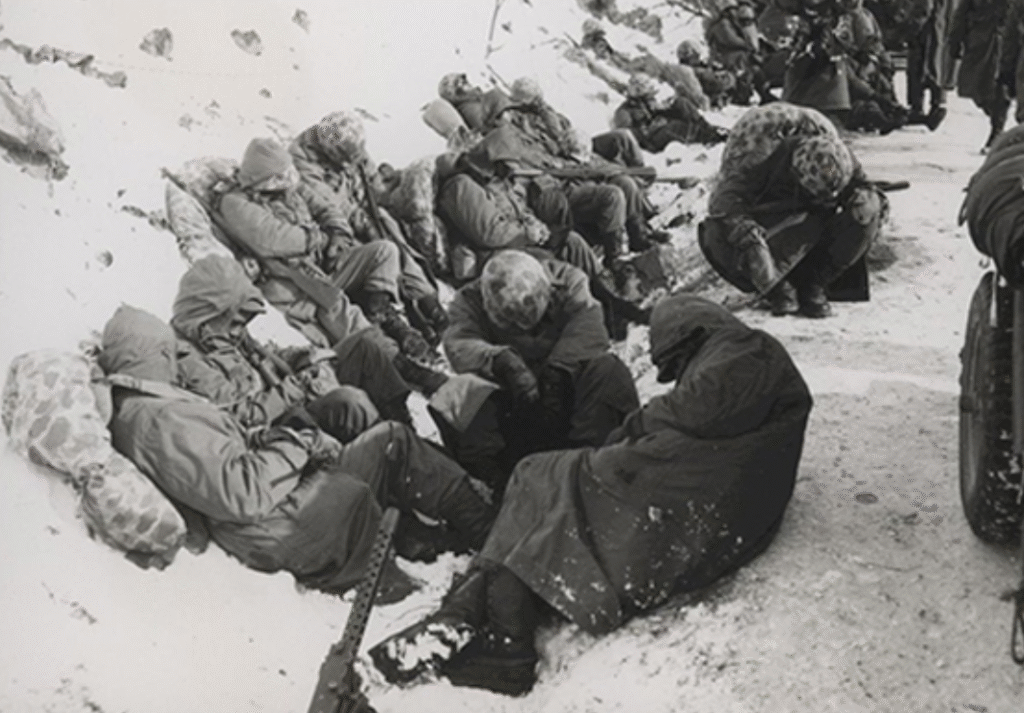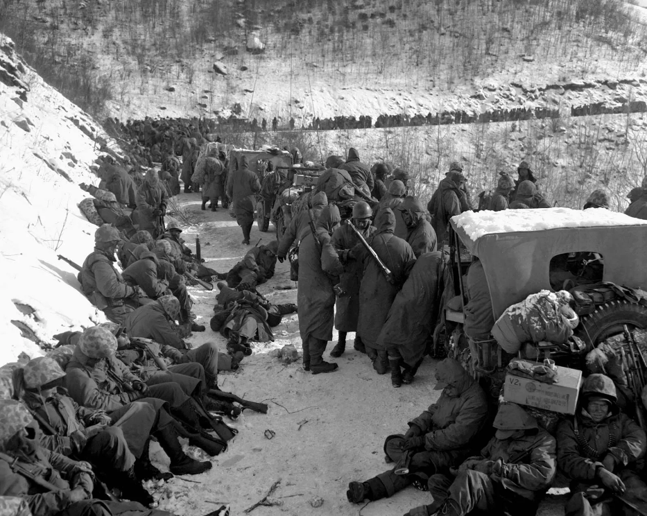 Since early November of that year, 1950, senior officer Edward Almond had been ordered by MacArthur to mobilize the 1st Marine and 7th Infantry divisions to the Chosin Reservoir, and from there, advance to the mining town of Kanggye where they would repel the North Koreans further towards the doorstep of China. This plan, however, required a fifty-five-mile march through the ferocious climate of the Taebaek Mountains.